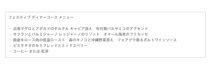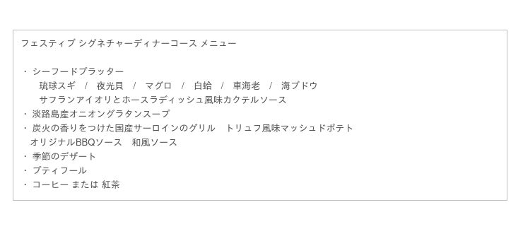 フェスティブ シグネチャーディナー(Festive Signature Dinner)