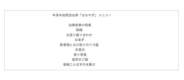 年末年始特別会席「はなやぎ」