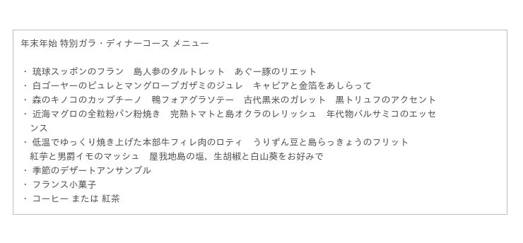 年末年始 特別ガラ・ディナーコース