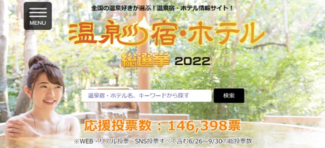 「温泉宿・ホテル総選挙2022」は、応援投票により各部門のランキング(部門賞)を決定します。