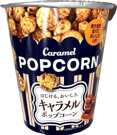 焼き塩を加えることで、キャラメルのおいしさが引き立った後引くおいしさのキャラメルポップコーンです。カップ型なので、まるで映画館で食べているポップコーンの気分を味わうことができます。