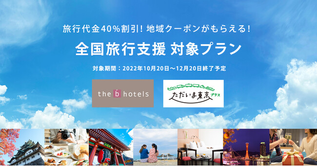 新型コロナウイルスの感染状況が落ち着きを見せ始めた2022年10月11日。全国旅行支援と入国緩和により、にわかに観光ムードが高まりつつあります。他の都道府県より遅れる形とはなりましたが、東京都の全国旅行支援が10月20日に開始されます。the b hotelsはこの取り組みに積極的に加わることで、コロナ終焉を願うお客様の旅行への期待感を満たすプラン展開を行います。