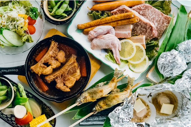 新鮮食材を豪快にグリルして堪能頂く「グランピングBBQプラン」。さらに旬の食材を使用した料理長自慢の「会席料理プラン」と充実のラインナップ。