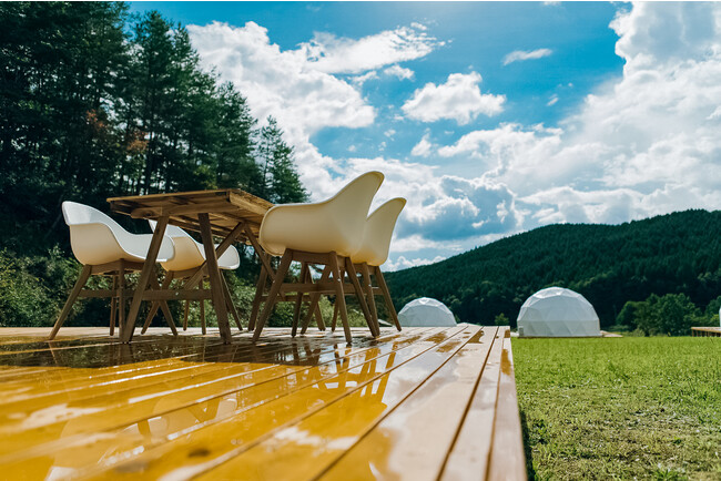 非日常空間が広がるドーム型テントは隣との距離が十分にとれた広い敷地に配置し、プライベート空間が保たれております。