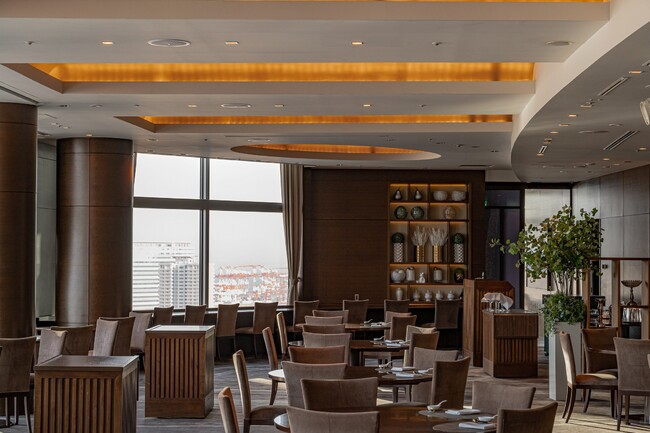 26階の「ザ・スコア・ダイニング」は、音楽を共有するために必要な“楽譜”になぞらえた4つのレストランが競演するエリア。多くの賞に輝くスターシェフたちによる、独創的な美食の数々を楽しめるデスティネーション・レストランです。ギリシャ語で“リズム”を意味するカフェ&バー「リュトモス」は、スコア・ダイニングの世界へお客さまをいざなうエントランスです。続くイタリアングリル「メロディア」は、音楽を構成する要素のひとつであるメロディをイメージ。「リュトモス」の空間とデザインをゆるやかに引き継ぎ、「メロディア」の空中に浮かぶ照明が音符を思わせます。東京のパノラマが広がる圧巻の眺望が堪能できる「チャイナシャドー」は、オーセンティックなチャイニーズをベースに新たな食材やエッセンスを掛け合わせた中国料理を提供します。そしてアトリウムの中央、「リュトモス」と「メロディア」の間には、鉄板焼「風音」。ストリングスが奏でる美食の競演をお楽しみください。
