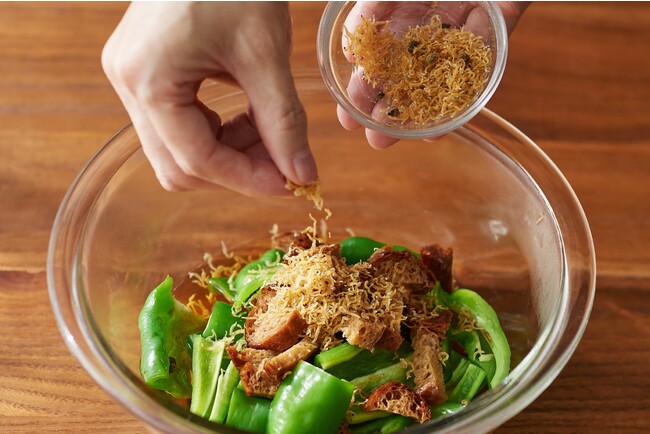 3. ちりめん山椒とひと口大に切った利休麩を加え混ぜ合わせる。