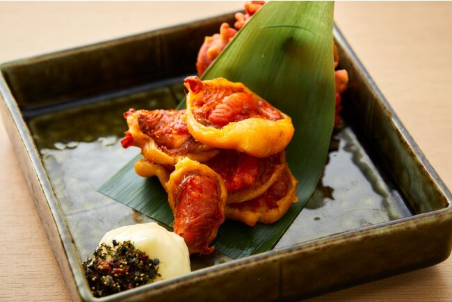 メニュー名:三陸産炙りほやの風干し 自家製七味とマヨネーズ添え