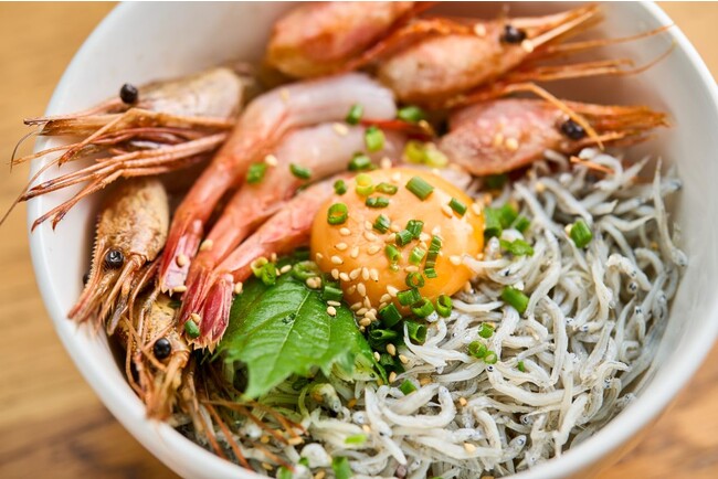 メニュー名:福島県産しらすと宮城県産海老2種の贅沢2色丼