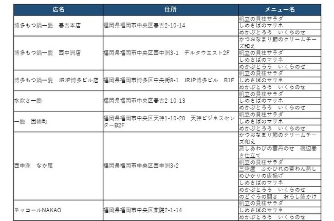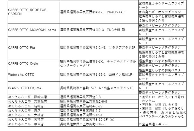 「三陸・常磐 うみうまフェア」第一弾 提供飲食店・メニュー一覧(福岡・九州エリア)