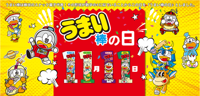 うまい棒は棒状のスナック菓子であり、その形状が数字の“1”に似ていることからこの日をうまい棒の記念日としました。記念日に合わせ弊社では、話題化のためキャンペーンを実施しております。