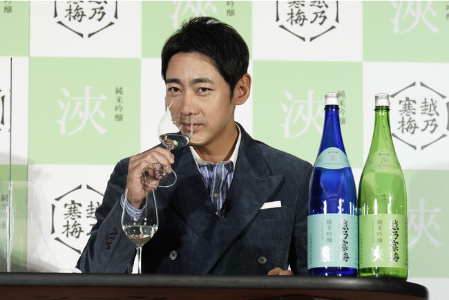 小泉孝太郎さんは本日のイベントについて、「石本社長と田崎さんの間で日本酒のコメントするのは、ここ最近のお酒を飲む中で一番緊張した。」と答え、新商品の“浹(amane)”を、「今までの日本酒の概念に捉われない新発見だった。日常生活の楽しみ方として、普段あまり日本酒を飲まない方にも身近に感じられるお酒。」とコメント。