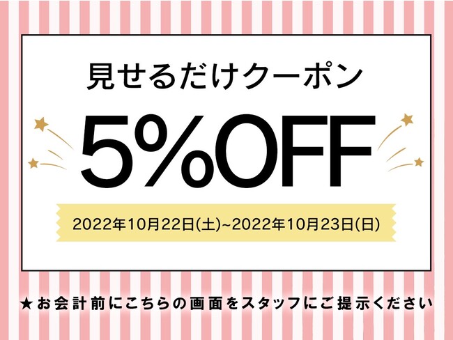 第一弾としては2022年10月22日(土)~23日(日)の2日間限定で5%OFFクーポンを配布致します。