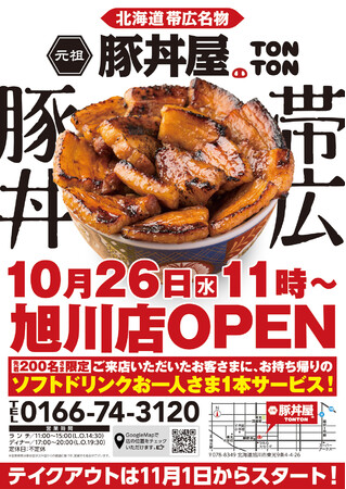 ワンズトライン株式会社(本社:大阪市北区芝田2丁目3番16号、代表取締役:山内仁)は、北海道2店舗目となる「元祖豚丼屋TONTON 旭川店」(住所:北海道旭川市東光9条4-4-26、TEL:0166-74-3120)を、'22年10月26日(水)オープンいたします。