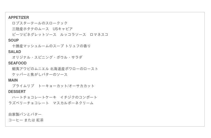 【東京・大阪】クリスマス ディナーコース 18,000円 (サービス料別)