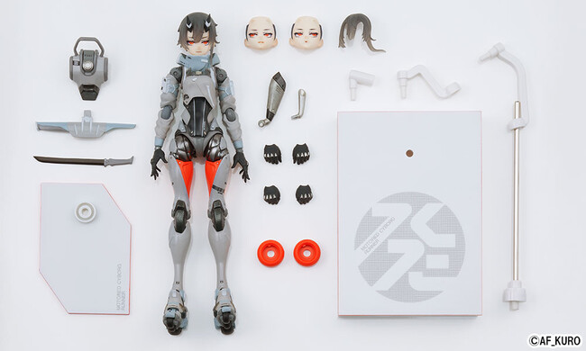イラストレーターAF_KURO氏が、内燃機関を搭載したサイボーグ達によるストリート・レーシングシーンを描いた企画『少女発動機』より、作品の主軸となる“モータード”ボディを立体化。