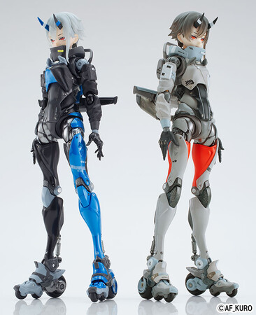 イラストレーターAF_KURO氏が、内燃機関を搭載したサイボーグ達によるストリート・レーシングシーンを描いた企画『少女発動機』より、作品の主軸となる“モータード”ボディを立体化。 第1弾は「MANDARIN SURF」/「TECHNO AZUR」の2色展開にてリリース。