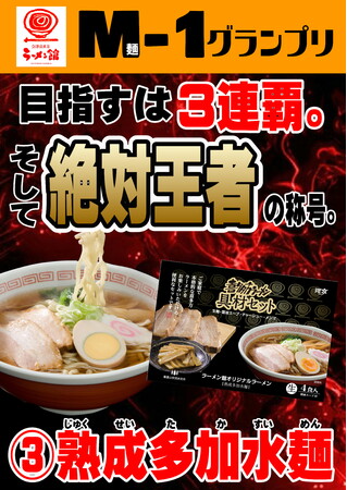 河京自慢のこだわり自家製麺3種類(細麺、熟成多加水麺、超・多加水麺)の試食を行い、一番美味しいと思った麺に投票。1位になった麺に投票した方の中から抽選で5名様に詰合せギフトをプレゼントいたします。