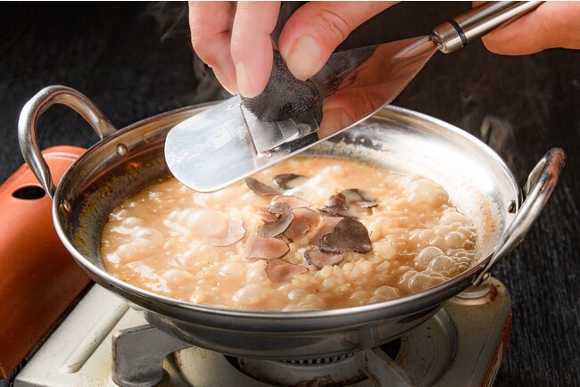 肉とチーズの旨味が溶け出したスープに トリュフとバターを加えた〆のリゾット風雑炊。