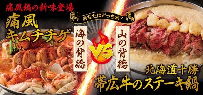 山の背徳鍋『ステーキ鍋』と海の背徳鍋『痛風キムチチゲ』どちらも10月20日スタート。