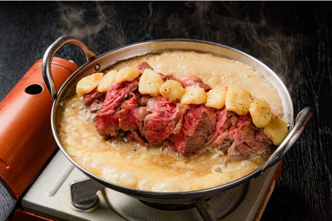 契約農場「豊西ファーム」の帯広牛のステーキとチーズを絡ませた 新感覚の鍋!