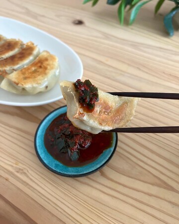 化学調味料や保存料を一切使わず、国産ニラにておつくりしております。唐辛子の上品な辛さと華やかな酸味はぎょうざとの相性抜群です。辛さは控えめですので、辛いものが苦手な方でもお召し上がりいただけます。ぎょうざのみならずお肉やお魚料理にも最適です。