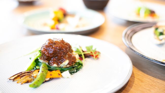 東峰村で採れた米や野菜を一流のイタリアンシェフが本格的なイタリアンを手掛けています。今回は、期間限定でデザートなどもハロウィン仕様に手がけます。