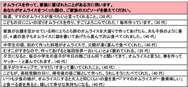 ??「毎週食べたいと言ってくれる」「オムライスに顔を書いてあげたら沢山食べてくれる」などオムライスをつくった際のご家族の嬉しいエピソードが多数!