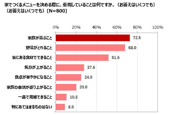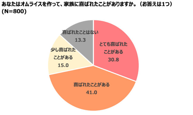??節約の意識が高まるとともに、家でつくるメニューを決める際に重視されていたのは「家族が喜ぶこと」。8割以上の人が、オムライスを作って、家族に喜ばれたことがあると回答。