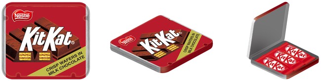 もう1つの「キットカット ミニ レトロ缶」は、「キットカット」が1973年に日本に初上陸した時のデザインをモチーフにした、キュートなレトロデザインとなっており、12月1日(木)より発売します。幅11cm程の小型缶のため、ご自身の小物アイテムをカバンの中に入れて持ち運ぶための“バッグインバッグ”としても使うことができます。