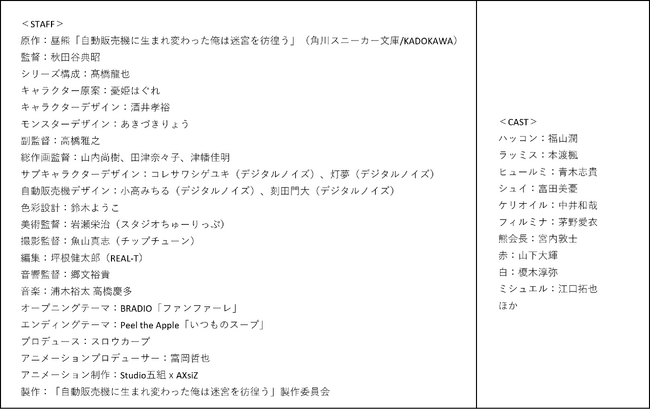 <アニメ「自動販売機に生まれ変わった俺は迷宮を彷徨う」とは>