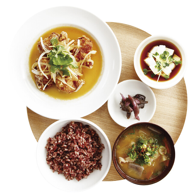 ざっくりつぶした半熟玉子を混ぜ込んだタルタルソースと甘酢の風味が効いたチキン南蛮の相性は抜群。人気No.1 or No.2を争うランチ定食です。
