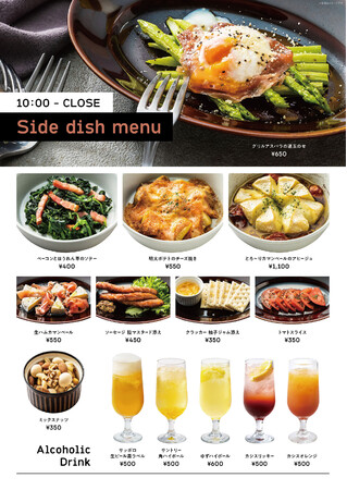 おつまみとアルコールメニューは、10時~CLOSEまで販売しております。