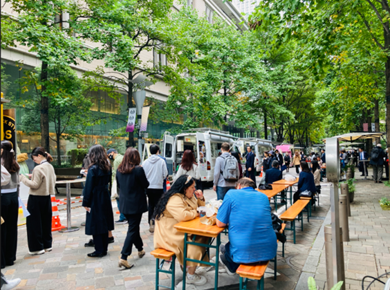 日比谷仲通り周辺では、東京産の新鮮な野菜やフルーツや東京ブランドのスイーツなどを扱ったマルシェ、東京産食材を使ったオリジナルメニューのキッチンカーがにぎわいました。また、「美容×美食」を叶えるレシピカードの配布や、「カラダと心が喜ぶ食の体感」を提供するワークショップも実施しました。