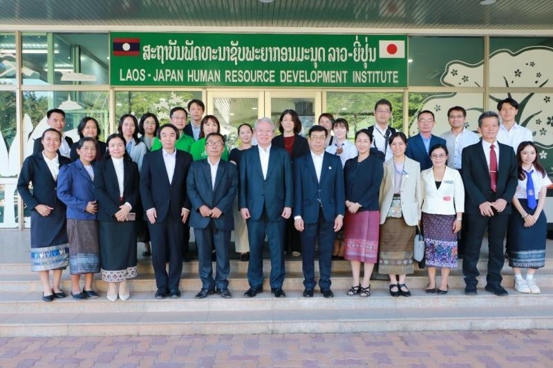田中JICA理事長、Dexanourath Seneduangdethラオス国立大学学長、Phonekeo Chanthamaly LJI所長らとの集合写真