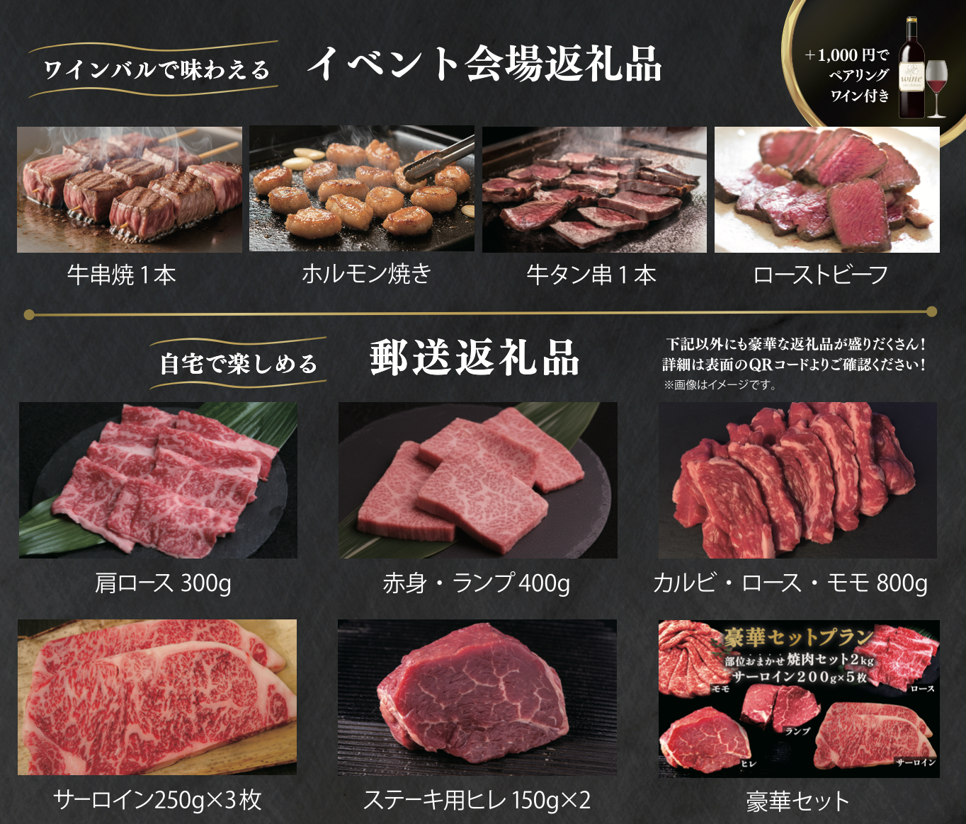 郵送での返礼品は焼肉やすき焼きを想定した豪華セットをはじめラインナップを充実させておりますので、ワインが好きな方・山形や上山市に縁のある方にご賛同いただければ嬉しいです。