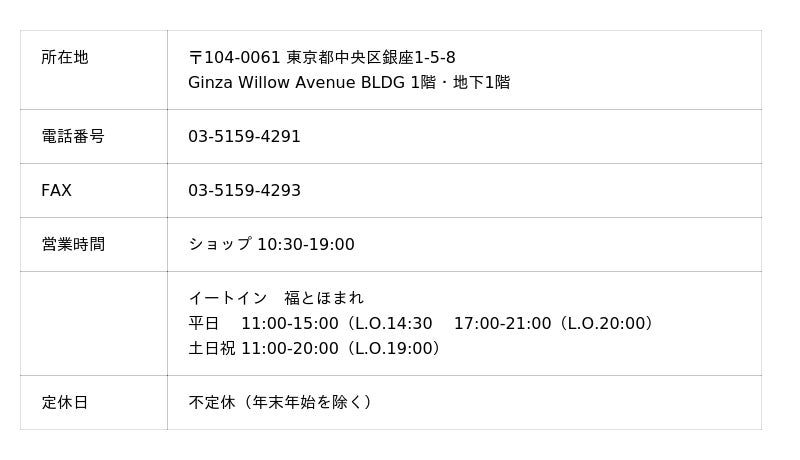 東京都中央区銀座 1-5-8 Ginza Willow Avenue BLDG 1F
