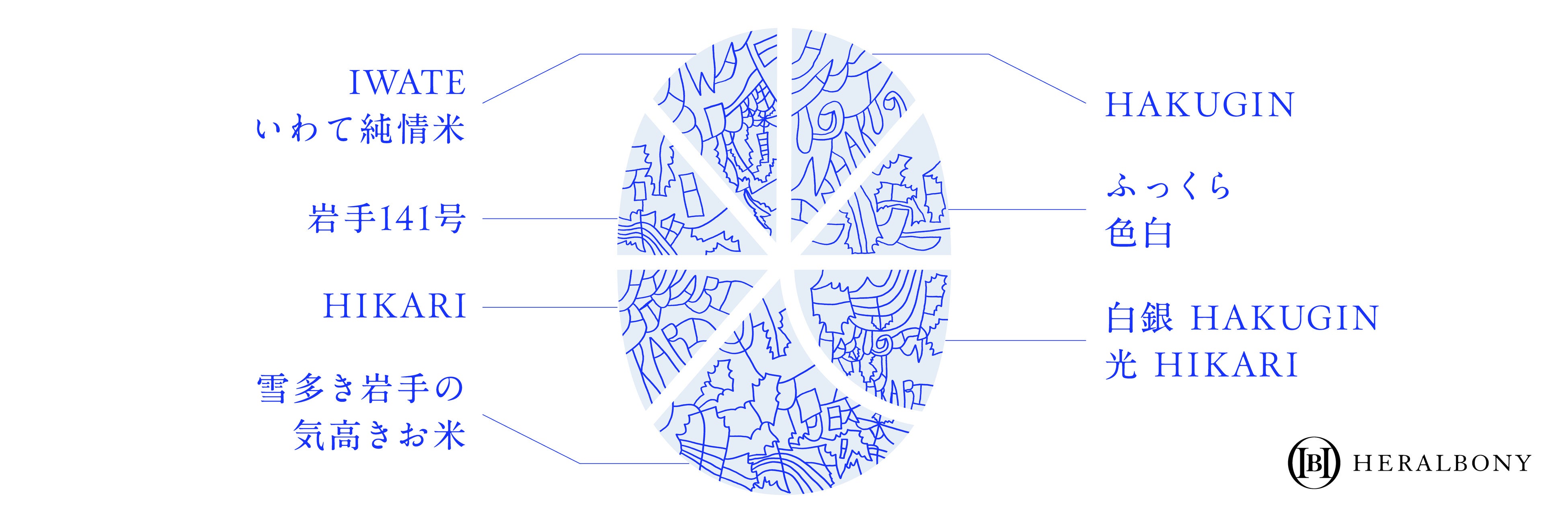 ロゴマークは、岩手県発の企業であり、現在では世界的に活躍の場を広げる株式会社ヘラルボニーとともに制作。ロゴマークに使用した作品は、ヘラルボニー契約作家で岩手県在住の作家・小林 覚(こばやし さとる)氏(るんびにい美術館在籍)がこのために描き下ろしたものです。岩手にゆかりのある企業・作家によるコラボレーションは、「白銀のひかり」が岩手から誕生したブランドを象徴しています。