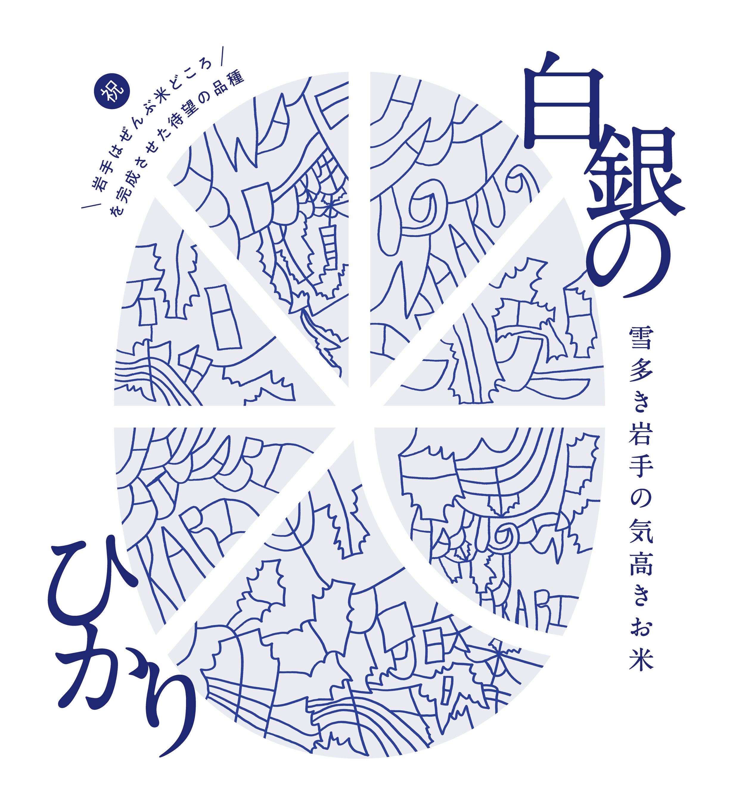 一粒のお米をイメージした楕円は、古来より寺社仏閣等の建築物にも取り入れられ、日本人が「美しい」と感じるとされる『白銀比(1:1.414)』で構成されています。1.414という数字は「白銀のひかり」の名称決定前の系統名である「岩手141号」にも通ずるところがあります。