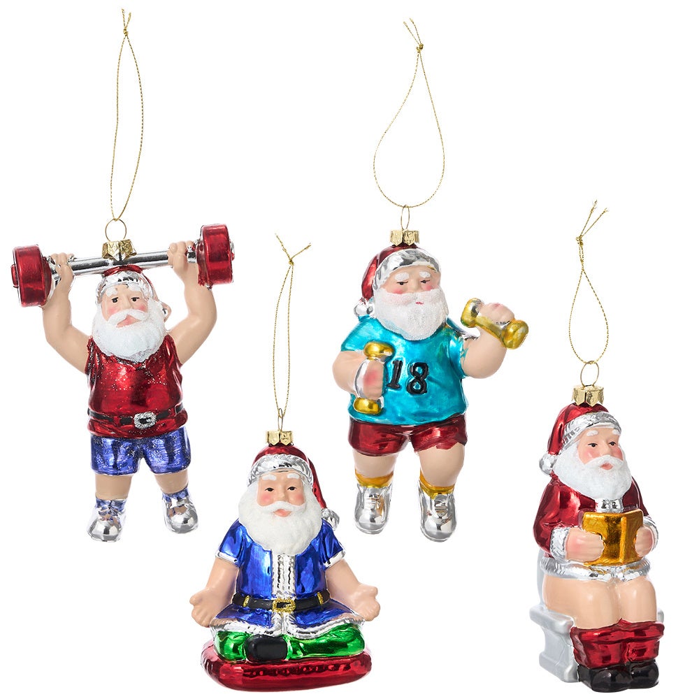 トイレ中やトレーニング中、メディテーション中など、サンタさんのユニークなシーンがオーナメントになりました。 サンタ オーナメント 各種 各880円(税込)