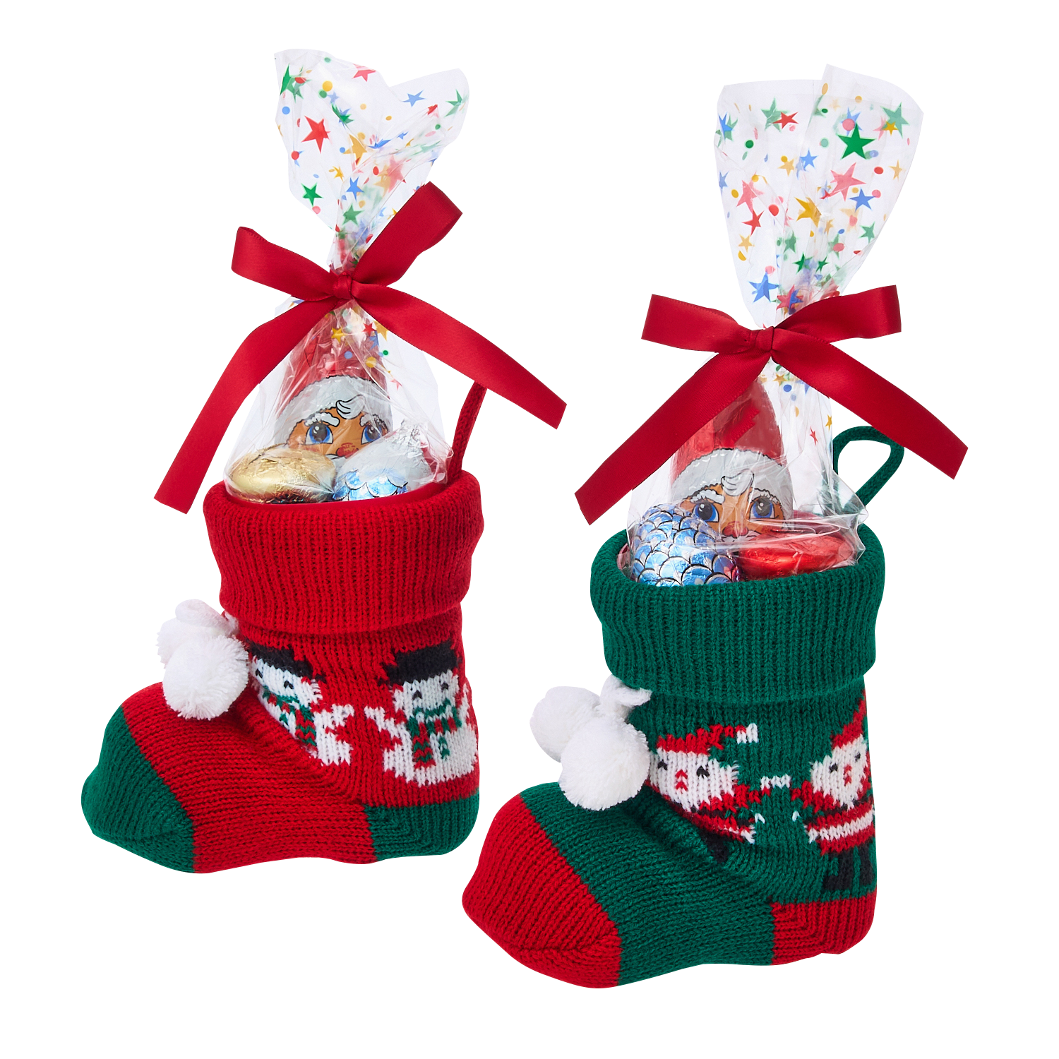 サンタクロースからのプレゼントを入れるための毛糸のブーツ(ソックス)に、サンタクロースの形のチョコレートなどがつまった、クリスマスの定番お菓子! 【PLAZA限定】WINDEL ストッキングブーツ 各種 各1,296円(税込)