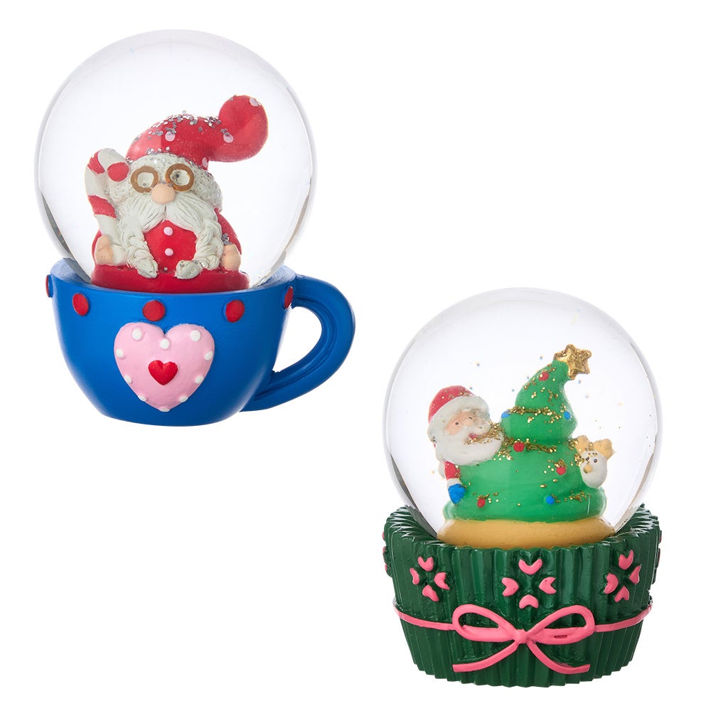 まるでカップケーキとコーヒーカップの中にサンタさんが乗っているような、ユニークなデザインのスノードーム。 【PLAZA限定】スノードーム (カップケーキ、コーヒーカップ) 各1,299円(税込)