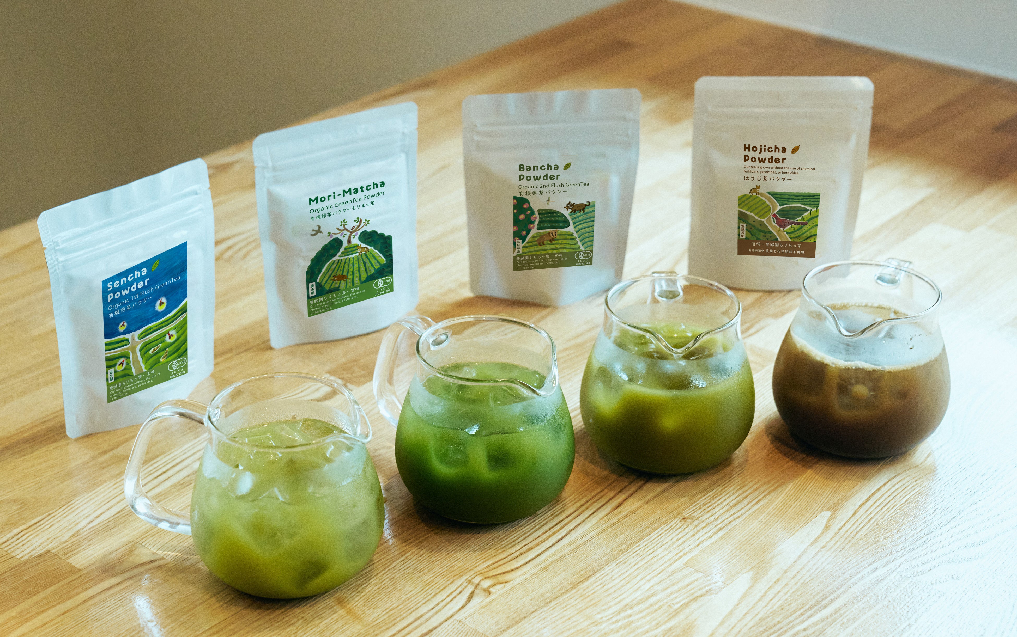 左からSencha Powder、Mori-Macha Powder、Bancha Powder、Hoji Powder