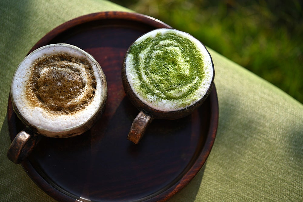 HOT 焙じ茶ラテとHOT もりまっ茶ラテ