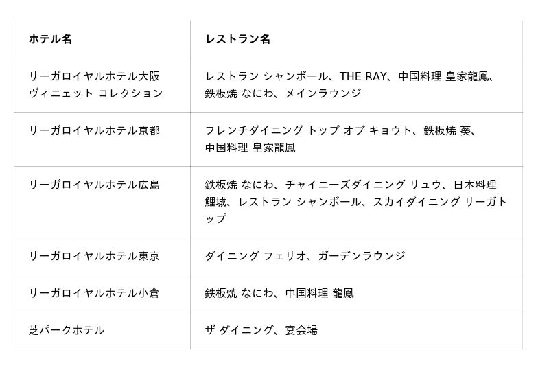 - 対象ホテル・レストラン(2025年11月1日時点)