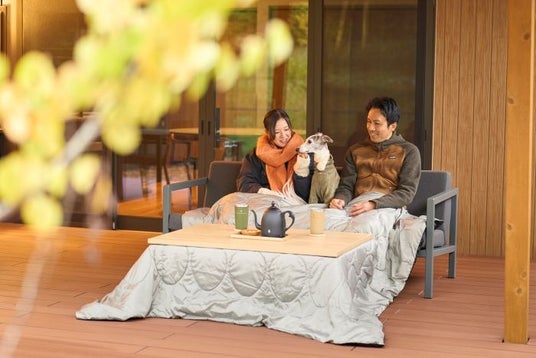 ・愛犬と一緒に温まる「こたつ」が新登場全棟のヴィラに愛犬と一緒にぬくぬくと温まれる「こたつ」をご用意します。こたつに入りながら愛犬と寄り添い、実家にいるような安心感とリゾートならではの贅沢さが共存する特別なひとときをお過ごしいただけます。客室温泉で身体を温めたあと、湯上がりに愛犬とこたつへ入り、心温まる冬ならではの滞在をお楽しみいただけます。