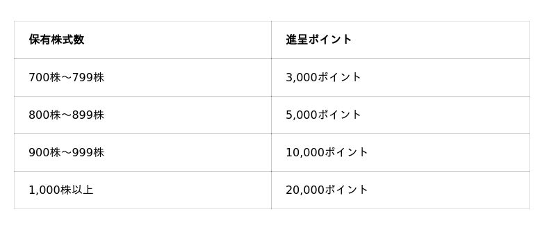 ※繰越条件:翌年9月末日において株主名簿に同一株主番号で連続2回以上記載され、かつ700株以上継続保有されている場合にのみ繰越せます(最大1回まで)。9月末日の権利確定日までに株主番号が変更された場合、当該ポイントは失効し繰越できません。