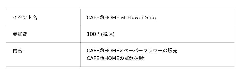今回のイベントでは、「CAFE@HOMEがギフトにぴったりであること」を体験で伝えるため、ギフトの定番である“花”とのコラボレーションを実施します。