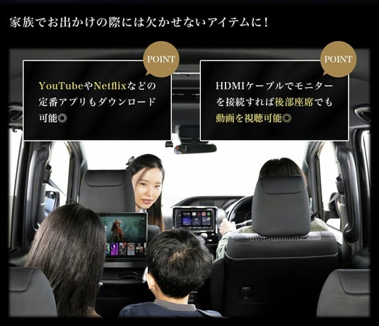 助手席や後部座席でYouTubeやNetflixが楽しめる