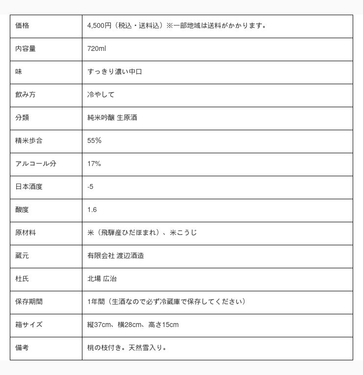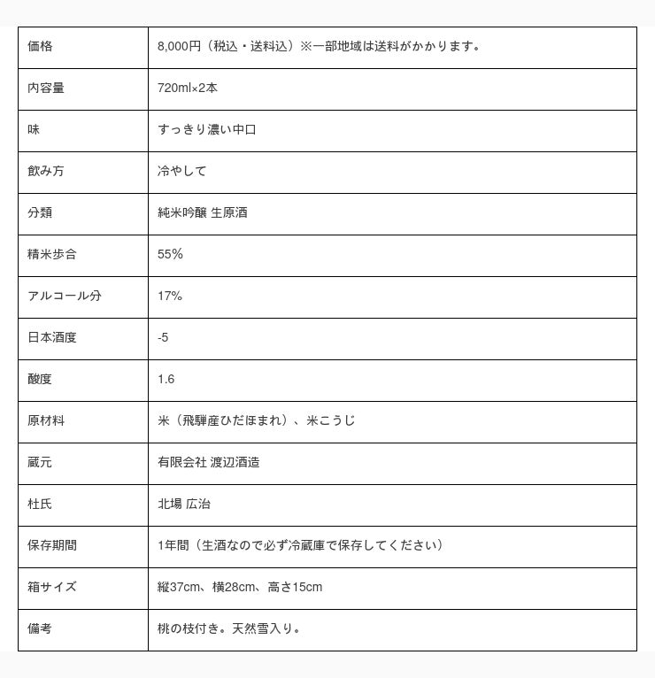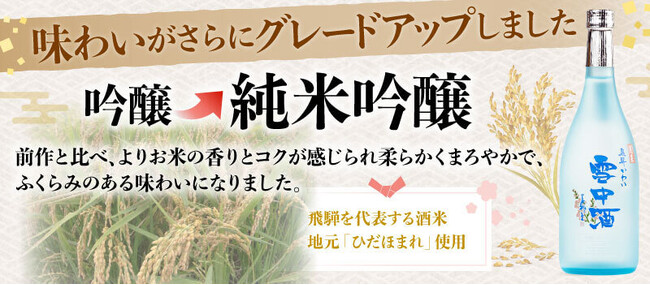 雪中酒には、地元飛騨の酒米「ひだほまれ」を使用。今年は、前作と比べ、よりお米の香りとコクが感じられ柔らかくまろやかで、ふくらみのある味わいになりました。