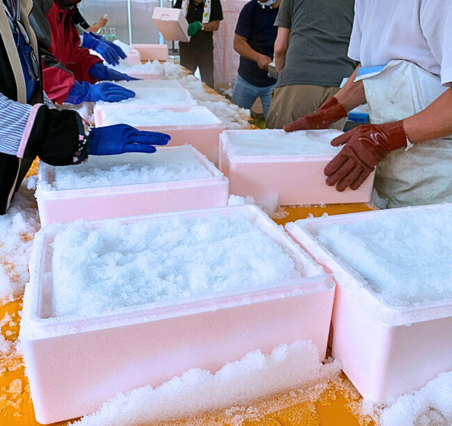 本物の雪で約3ヶ月冷却し、雪と一緒に全国に出荷